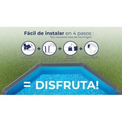 Entdecke eine großartige Gelegenheit, ein Luxusprodukt zum besten Preis zu erwerben: den neuen Ovalen Pool in Anthrazit-Optik Dream Pool Serie Anthracite 730x375x132 cm von Gre mit modernstem Design, kompletter Ausstattung und idealen Maßen für deinen Garten. Das Set enthält: 1 Dream Pool Serie Anthracite Pool in Anthrazit-Optik. PVC-Liner in Blau, Stärke 40/100, mit spezieller UV-Schutzbehandlung. Sandfilteranlage mit einer Leistung von 6.000 l/h inklusive Filtersand. Sicherheitsleiter mit Plattform. Polyester-Schutzmatte. Injektionsschützer und Stahlprofiler. Interessante Informationen zum Artikel: Empfohlenes Alter für die Nutzung: ab 6 Jahren. Ungefähre Maße des Pools: 730 cm Länge x 375 cm Breite x 132 cm Höhe. Mindestplatzbedarf für die Installation: 770 cm Länge x 495 cm Breite. Ungefähre Wasserkapazität: 28.210 Liter. Ungefähres Gewicht des Pools ohne Wasser: 348 kg. Omega-System: Eingebetteter Stahlträger 15x15 cm macht Außensäulen überflüssig und ermöglicht eine optimale Nutzung des Gartens.