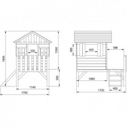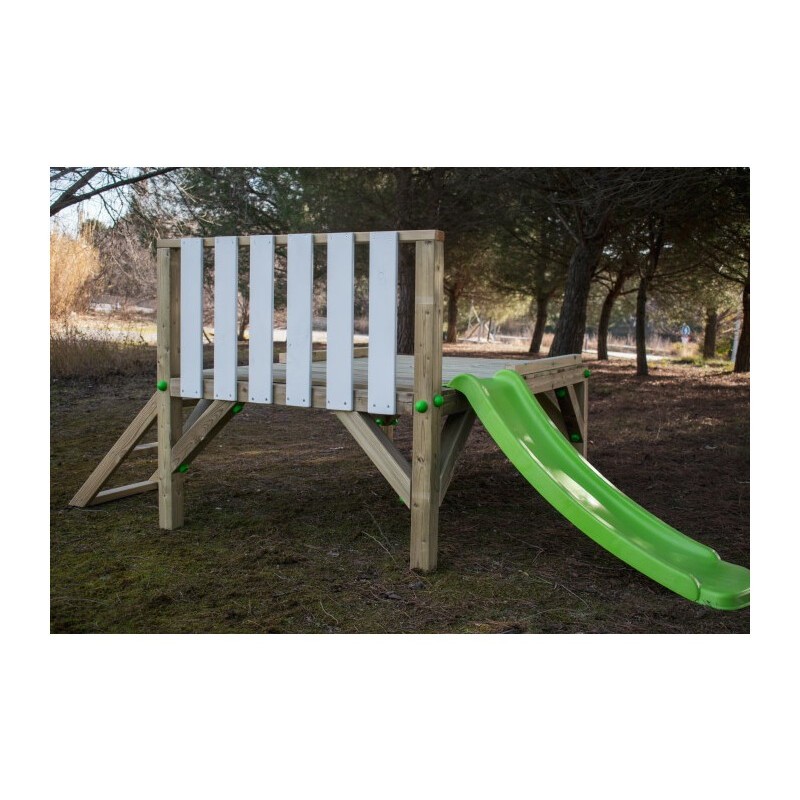 Wenn du bereits das beliebte und lustige Lollipop-Kinderhaus aus Holz hast, darfst du die Gelegenheit nicht verpassen, diese Erhöhte Plattform mit Rutsche für das Lollipop-Haus von Masgames zu nutzen. Eine äußerst praktische Ergänzung, um dem Spaß im heimischen Garten eine neue Dimension zu verleihen. Spaß mit Stil und garantiert, zusammen mit dieser neuen Plattform aus hochbeständigem Naturholz. Es ist sehr einfach zu installieren und bringt neue Spiel- und Entwicklungsmöglichkeiten in das ohnehin schon großartige Masgames-Holzhaus. + Inklusive: Erhöhte Naturholzplattform mit Zugangstreppe und Kinderrutschrampe aus Kunststoff. Hinweis zum Artikel: - Empfohlenes Alter für seinen Genuss: 3 Jahre oder mehr. - Ungefähre Abmessungen der erhöhten Plattform mit Rutschrampe: 108 cm hoch x 266 cm lang x 172 cm breit. - Ungefähre Abmessungen der erhöhten Plattform ohne Rutschrampe: 108 cm hoch x 170 cm lang x 172 cm breit. - Ungefähre Länge der Rutsche: 120 cm lang. Zusätzliche Information: + Das Holzhaus Lollipop wird separat verkauft, es ist nicht im Set enthalten. + Plattform für den privaten Gebrauch. + Montageart: Vormontierte Paneele. + Die Rutschrampe ist in 3 verschiedenen Farben erhältlich: Pink, Grün und Blau. Vergiss nicht, die Farbe, in der du die Rutsche erhalten möchtest, in unserem Kommentarbereich für die Bestellung anzugeben. Falls die gewünschte Farbe nicht angegeben wird, wird ein zufälliges geschickt.