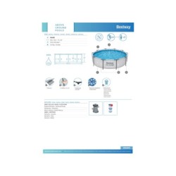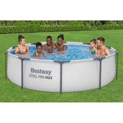 Pool rund abmontierbar BESTWAY 56408 305 x 76 cm Fantastisch für Terrasse oder Garten. strapazierfähig. Merkmale: - Kapazität 4.678 Liter (ca.) - Masse 305 x 76 cm (Durchmesser x Höhe) - Stahlstangen rostfrei - Ventil schnelle Entleerung - Einfache Installation Mit: - Filteranlage Filter Kartusche für 1.249 Liter/Stunde Ref 58381 (braucht Filter Kartusche Ref 58093, inklusive) - Line Tritech, dreischichtig Polyester mit Laminat PVC resistent gegen chemische Produkte und mit Anti-UV Behandlung - Reparatur-Patches - Getränkehalter