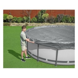 Genauso wichtig wie die Pflege des Poolinneren ist auch die Pflege des Außenbereichs. Deshalb findest du hier diese neue und robuste Poolabdeckung mit 457 cm für runde Pools von Bestway. Ein leistungsstarker Artikel, sehr einfach an dem passenden Pool zu befestigen und ideal, um all seine Vorteile vom ersten Moment an zu genießen, sobald er zu Hause ankommt. Das Set enthält: Schwarze Abdeckung für runde Aufstellpools. Interessante Informationen zum Pool: Ungefähre Maße: Die Abdeckung misst ca. 457 cm im Durchmesser. Abdeckung für erhöhte Pools mit runder Form und 457 cm Durchmesser. Spezielles Befestigungssystem mit hoher Widerstandsfähigkeit gegen Wind. Design mit speziellen Ablauflöchern, um die Ansammlung von Wasser auf der Oberseite zu vermeiden. Materialien mit hoher Beständigkeit gegen UV-Strahlen und Zugbelastung. Empfohlenes Alter für die Nutzung: Ab 6 Jahren.