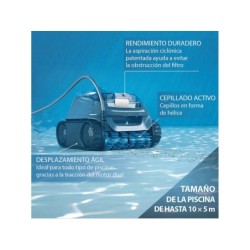 Wenn du die effizienteste, schnellste und einfachste Reinigung für deinen Pool suchst, ist der neue und leistungsstarke Zodiac CNX 2590 Bodensauger-Roboter für Eingelassene und Aufstellpools von Gre genau das Richtige. Genieße alle Vorteile ab dem ersten Einsatztag. Das Set enthält: 1 Bodensauger-Roboter CNX 2590 von Zodiac mit drei elektronisch geschützten Motoren, Kettenantrieb, Zahnradgetriebe, automatischem Stopp beim Verlassen des Wassers, Strandreinigungssystem, Filter mit 4 l Fassungsvermögen und transparenter Abdeckung zur Filterkontrolle, leichtem, robustem Design und Steuereinheit mit Basisstation. Interessante Informationen zum Artikel: Empfohlenes Alter für die Nutzung: ab 16 Jahren. Ungefähre Maße des Roboters: 30 cm Höhe x 40 cm Breite x 43 cm Tiefe. Für eingelassene und Aufstellpools mit starren Wänden beliebiger Form, Böden und Beläge, bis zu 10 m Länge und 5 m Breite. Reinigungszonen: Boden, Wände und Wasserlinie. Reinigungszyklen: 2 Reinigungsmodi. Gewicht des Artikels: 8 kg. Ungefähre Kabellänge: 15 m. Filterstufe: 150/60 Mikron. Reinigungsbreite: 23 cm. Filterfläche: 1.066 cm².
