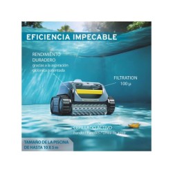Einer der effizientesten und leistungsstärksten Roboter für deinen Pool wartet auf dich – verpasse nicht den neuen Zodiac OF 4220 iQ Freedom Poolreinigungsroboter für Eingebaute und Aufstellpools von Gre. Genieße alle Funktionen sogar aus der Ferne über die App iAquaLink, die es dir ermöglicht, die Reinigungszyklen zu steuern, Benachrichtigungen zu erhalten, den Reinigungsmodus anzupassen und viele weitere Vorteile zu nutzen. Dank der „Tap&Lift“-Technologie erreichst du mit nur einem Handgriff die Wasserlinie! Verbinde dein Smartphone mit dem Reinigungsroboter über die App iAquaLink, um die Reinigungszyklen zu steuern, Benachrichtigungen zu erhalten, den Reinigungsmodus anzupassen und viele weitere Nutzungsvorteile zu genießen. Das Set enthält: 1 Poolreinigungsroboter OF 4220 iQ Freedom von Zodiac mit zwei Motoren mit Schutz, wiederaufladbarem Lithium-Akku, Kettenantrieb, Getriebeübertragung, automatischem Stopp beim Verlassen des Wassers, Strandfunktion, Filter mit 3 Litern Fassungsvermögen, Zyklon-Saugsystem, leichtes und widerstandsfähiges Design, Haken zur Bergung des Roboters im Wasser und Ladekabel für den Roboter. Interessante Informationen zum Artikel: Empfohlenes Alter für die Nutzung: ab 16 Jahren. Ungefähre Maße des Reinigungsroboters: 30 cm Höhe x 30 cm Breite x 43 cm Tiefe. Geeignet für eingebaute und Aufstellpools von bis zu 10 m Länge und 5 m Breite mit starren Wänden beliebiger Form, Böden und Belägen. Reinigungszonen: Boden, Wände und Wasserlinie. Gewicht: 8,9 kg. Filterfeinheit: 100 Mikron. Reinigungsabdeckung: 23 cm. Filteroberfläche: 480 cm².